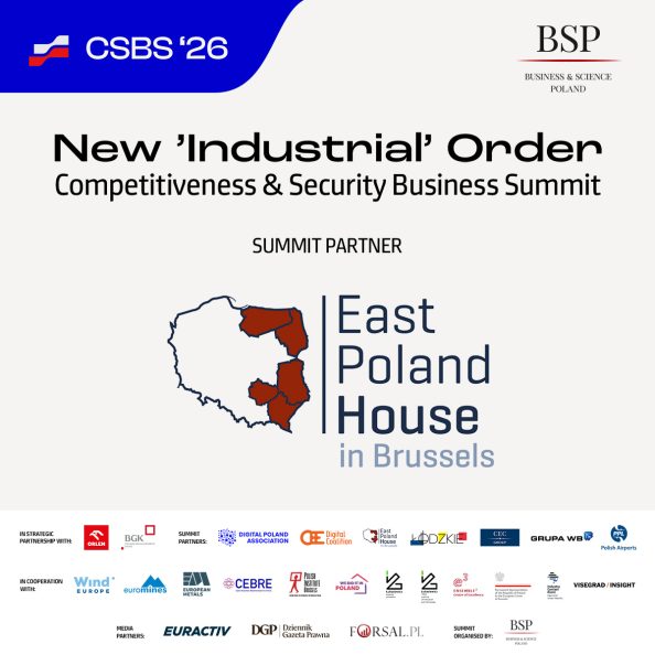 Konferencja „New ‘Industrial’ Order – Competitiveness & Security Business Summit (CSBS’26)” odbyła się 18 marca 2026 r. w Brukseli. Organizatorem wydarzenia było Business & Science Poland, a partnerem szczytu był Dom Polski Wschodniej / East Poland House w Brukseli, który wspiera promocję potencjału gospodarczego