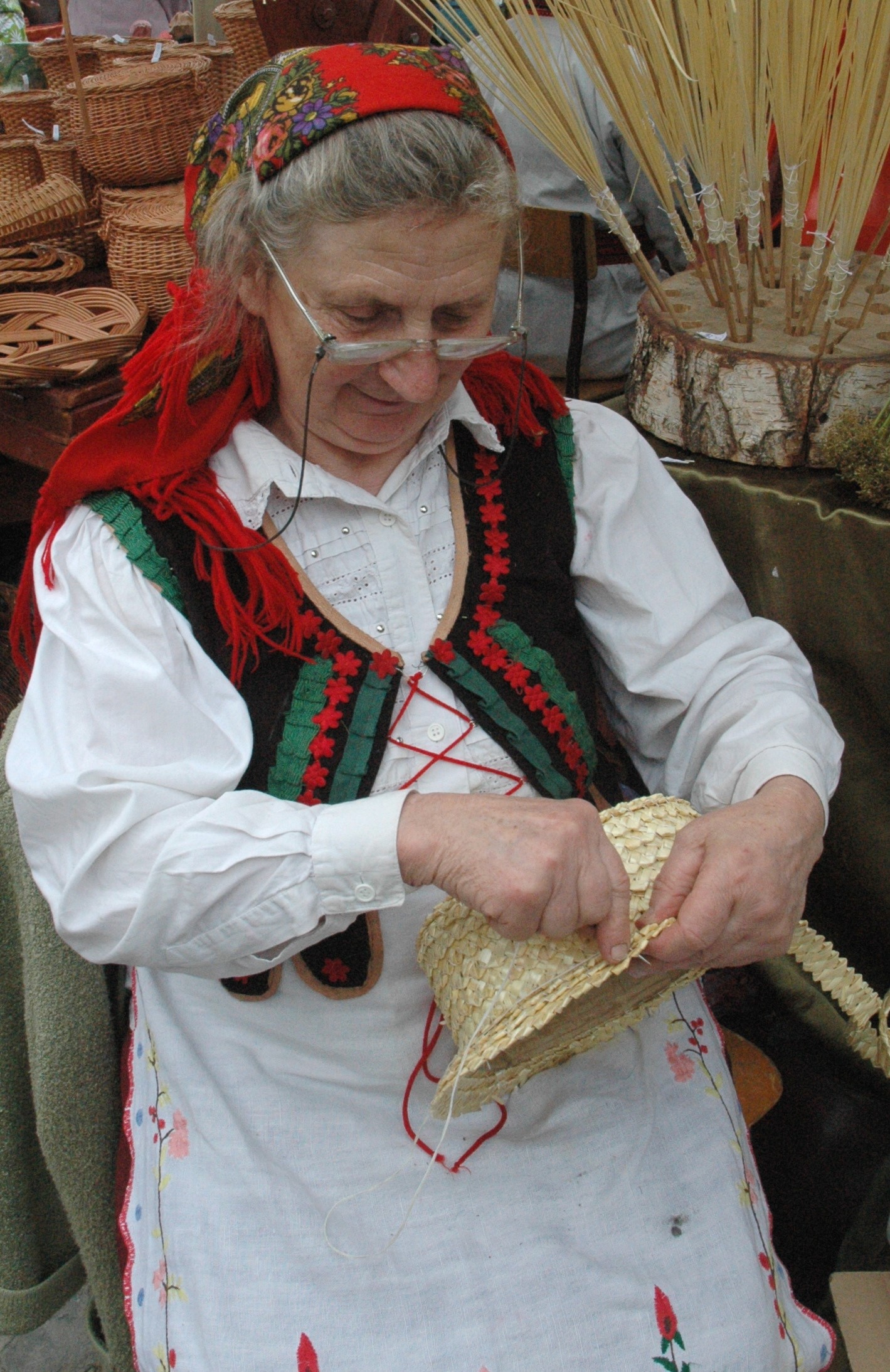 Niemniej znaczące miejsce w dorobku Heleny Kołodziej zajmuje sztuka ludowa. Już w dzieciństwie artystka zapoznała się z wzorami tradycyjnej plastyki obrzędowej i zdobniczej, przyswoiła je i kreatywnie rozwinęła. Wykonuje m.in. palmy wielkanocne, pisanki, pająki, ozdoby choinkowe, rózgi weselne, wycinanki, kwiaty z bibuły, figurki słomiane, kapelusze i koszyczki. Jej domeną są unikalne wytwory ze słomy.