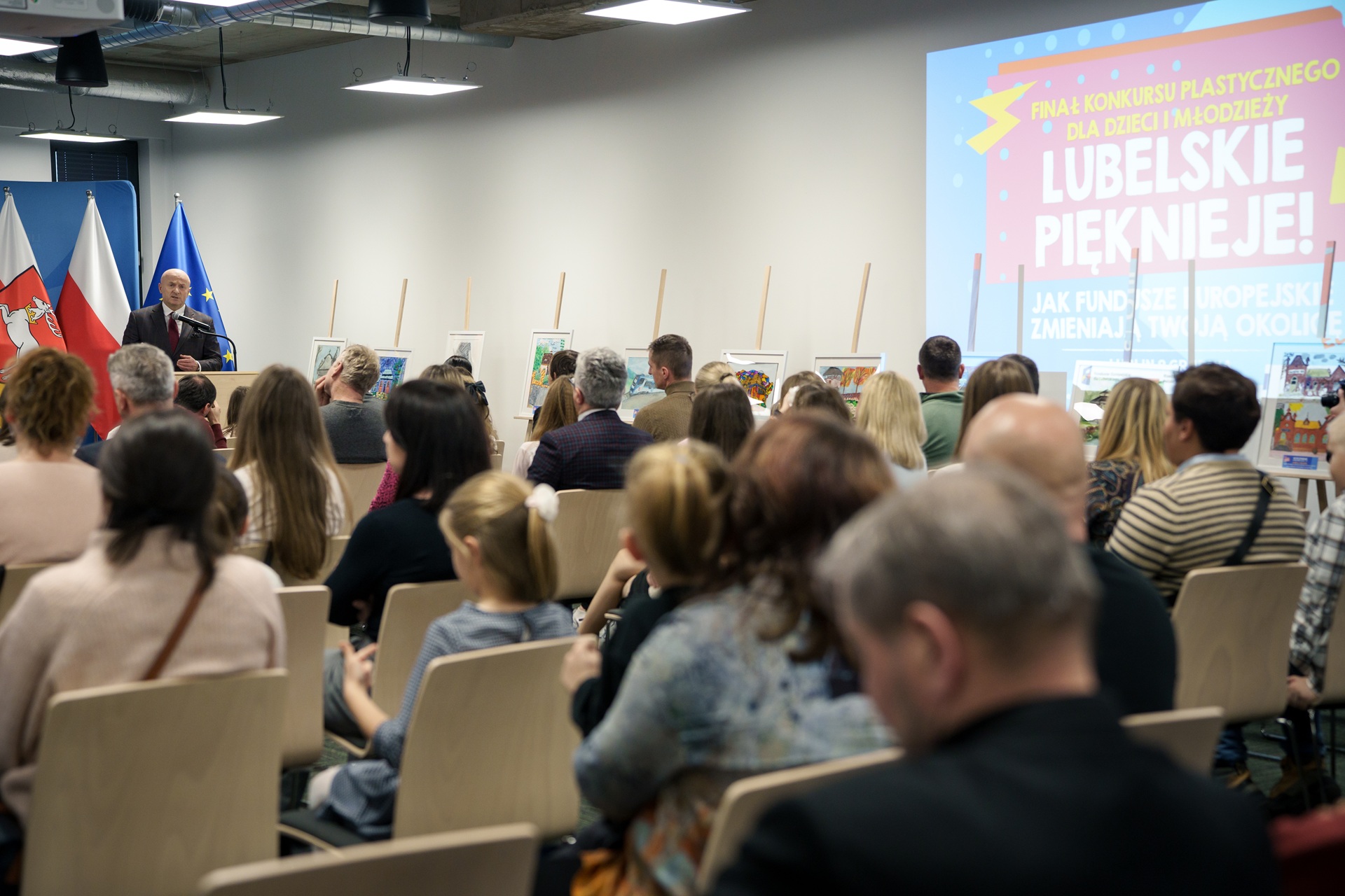 Wczoraj (9.12.2025) w siedzibie Lubelskiej Agencji Wspierania Przedsiębiorczości w Lublinie marszałek Jarosław Stawiarski wręczył nagrody laureatom i wyróżnionym w 6. edycji konkursu plastycznego „Lubelskie Pięknieje. Jak Fundusze Europejskie zmieniają Twoją okolicę”. Konkurs jest organizowany cyklicznie od 2020 r. w ramach obchodów Dni Funduszy Europejskich w województwie lubelskim.