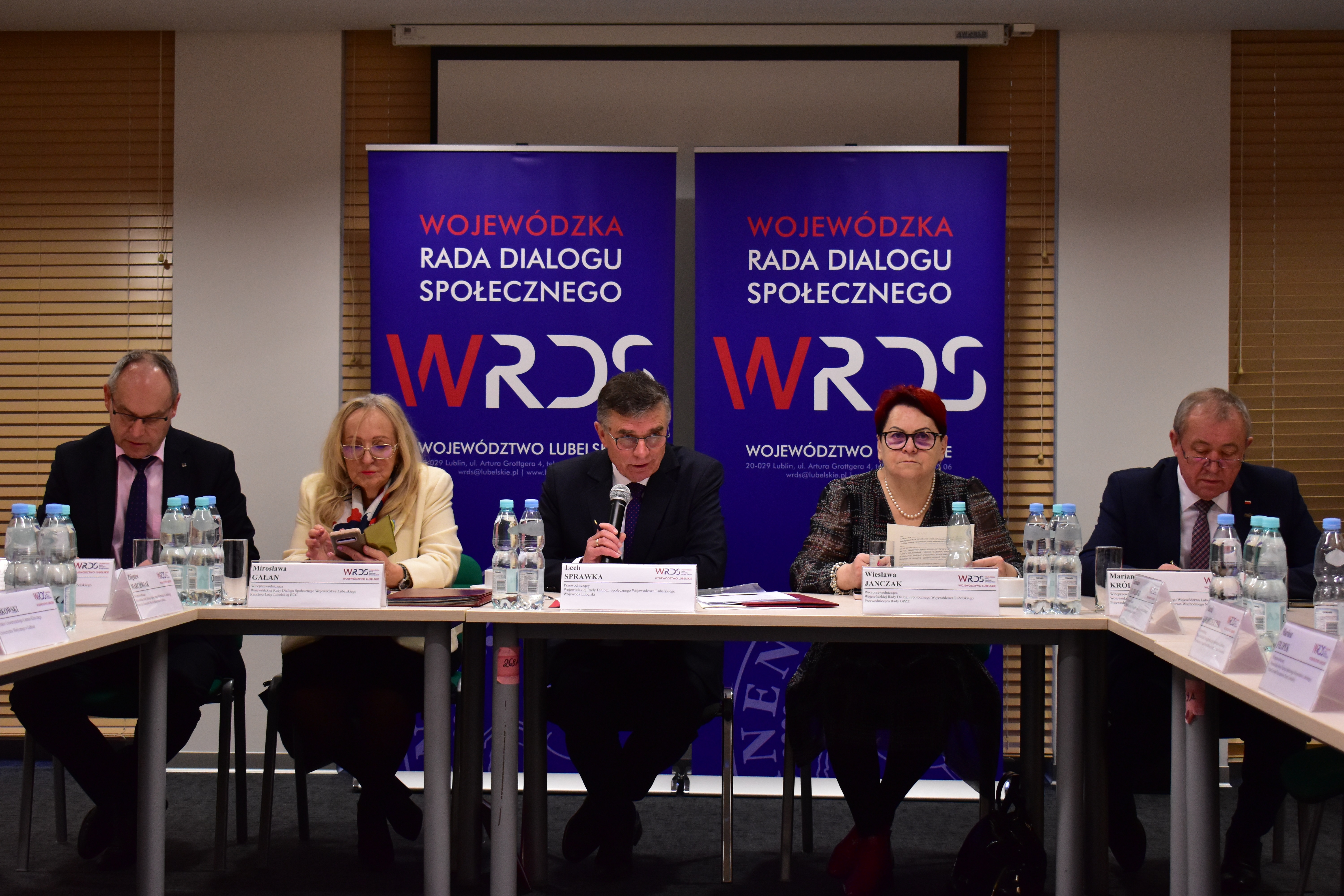 Na prośbę Prezydium WRDS WL w posiedzeniu uczestniczyli: Małgorzata Skrok – Sekretarz Województwa Lubelskiego, Bernarda Machniak – Przewodnicząca Zarządu OZZPiP Regionu Lubelskiego, Zdzisław Antoń – Starosta Lubelski i Przewodniczący Konwentu Powiatów Województwa Lubelskiego, Paweł Piróg – p.o. Dyrektora Lubelskiego Oddziału Wojewódzkiego NFZ, Leszek Buk – Prezes Okręgowej Izby Lekarskiej w Lublinie, Marek Chmielewski – Przewodniczący SZR ds. Polityki Społecznej i Ochrony Zdrowia WRDS WL, płk Aleksander Michalski – Komendant 1. Wojskowego Szpitala Klinicznego SP ZOZ w Lublinie, Karol Tarkowski – Dyrektor Uniwersyteckiego Centrum Klinicznego Uniwersytetu Medycznego w Lublinie oraz prof. Lech Panasiuk – Dyrektor Instytutu Medycyny Wsi w Lublinie. Dodatkowo w formie zdalnej w spotkaniu wzięli udział przedstawiciele szpitali samorządowych. Zaproszeni goście przedstawili informacje odnoszące się do braków kadrowych w służbie zdrowia, podnoszenia kwalifikacji pracowników medycznych i możliwościach w zakresie realizacji zawodowej zdobytych umiejętności w miejscu pracy, zmiany systemu finansowania oraz jego efektach, a także wykonaniu ryczałtu przez szpitale na terenie województwa lubelskiego. Przedstawiciele szpitali zaprezentowali informacje na temat funkcjonowania finansowego i kadrowego placówek z uwzględnieniem przeprowadzonych inwestycji oraz informację o realizacji funkcjonującej od 1 lipca 2022 r. ustawy o zmianie ustawy o sposobie ustalania najniższego wynagrodzenia zasadniczego niektórych pracowników zatrudnionych w podmiotach leczniczych. Przedstawione informacje będą stanowiły podstawę dla materiału, którego wypracowanie zlecono SZR ds. Polityki Społecznej i Ochrony Zdrowia WRDS WL.