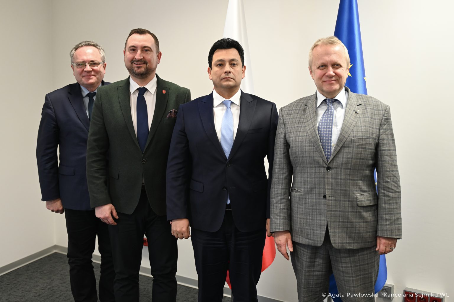 12 lutego 2025 r. Przewodniczący Sejmiku Województwa Lubelskiego, prof. Mieczysław Ryba, wraz z Wicemarszałkiem Województwa Lubelskiego, Markiem Grzegorzem Wojciechowskim oraz Przewodniczącym Komisji Rozwoju Regionalnego i Współpracy Zagranicznej, Zbigniewem Wojciechowskim, spotkał się z Ambasadorem Uzbekistanu w Polsce, Amirsaidem Agzamkhodjaevem. W rozmowach uczestniczyli również Mirzokhid Alikulov, Dyrektor Sekcji Współpracy Gospodarczej, oraz asystent ambasadora Sardor Akhmatov.