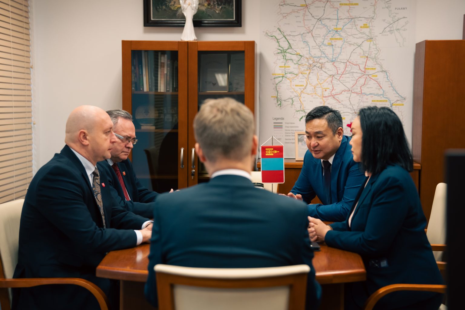 Wicemarszałek Województwa Lubelskiego, Piotr Breś oraz Przewodniczący Komisji Rozwoju Regionalnego i Współpracy Zagranicznej, Zbigniew Wojciechowski spotkali się z Ambasador Mongolii w Rzeczypospolitej Polskiej, Panią Navaan-Yundengiin Oyundari. Rozmowa dotyczyła możliwości nawiązania współpracy pomiędzy Województwem Lubelskim a Ajmakiem Dundgovi – jednym z regionów administracyjnych Mongolii. Pani Ambasador zaproponowała wsparcie w zainicjowaniu kontaktów między samorządami, podkreślając gotowość do pośredniczenia w tym procesie.