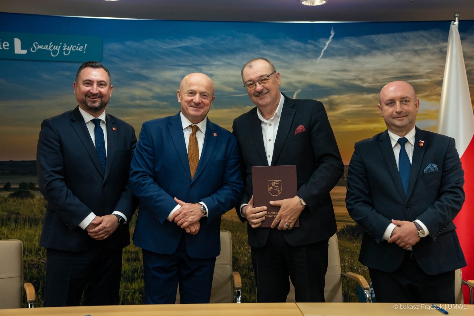 Przedstawiciele 32 gmin z województwa lubelskiego podpisali dziś umowy o udzielenie dotacji celowej na modernizację lub budowę dróg dojazdowych do gruntów rolnych. Umowy z przedstawicielami gmin parafowali marszałek Jarosław Stawiarski oraz wicemarszałkowie Piotr Breś i Marek Wojciechowski. Wysokość udzielonych dotacji przekracza 4,1 mln zł.