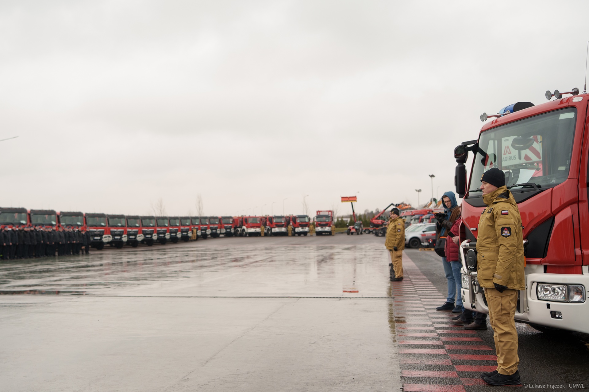 - 20 ciężkich pojazdów ratowniczo-gaśniczych wyposażonych w zbiorniki wody przystosowane do transportu wody pitnej i gaśniczej. Nowymi wozami odjechały jednostki OSP w Sidorkach, Biszczy, Leśniowicach, Dziekanowie, Białej, Fajsławicach, Urzędowie, Pałecznicy, Wilczopolu, Jawidzu, Adamowie, Chodlu, Laskach, Kazimierzu Dolnym, Żabikowie, Kłoczewie, Minkowicach, Tyszowcach, Orchówku oraz Wierzbie. Dzięki nim strażacy będą mogli nie tylko gasić pożary, ale także dostarczać wodę w sytuacjach kryzysowych, np. podczas suszy.