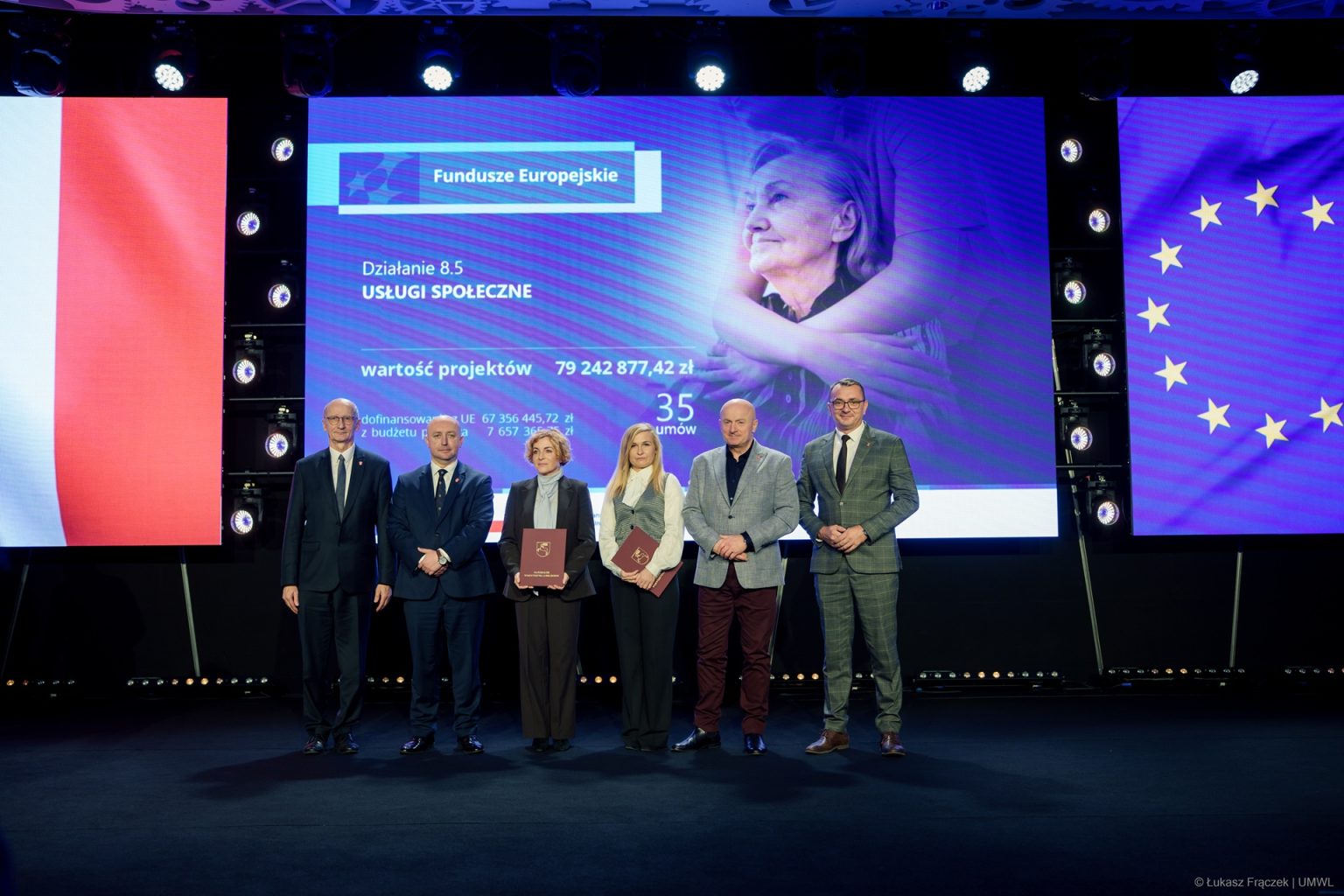 Uroczystość rozpoczęto wręczeniem 35 umów o dofinansowanie projektów z Działania 8.5 Usługi społeczne o łącznej wartości około 80 mln zł, z czego dofinansowanie z UE to ponad 67 mln zł, a wkład Budżetu Państwa to prawie 8 mln zł.