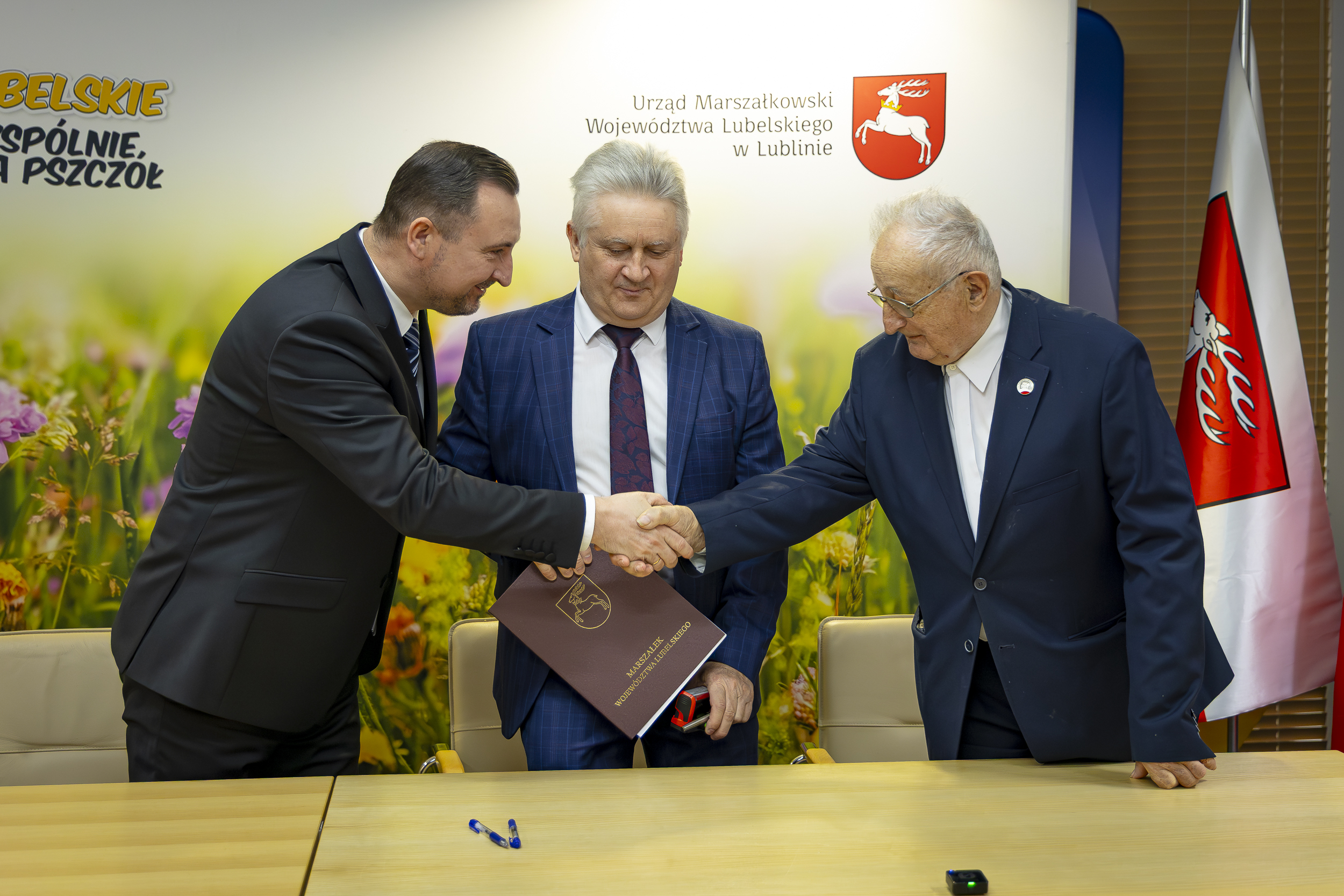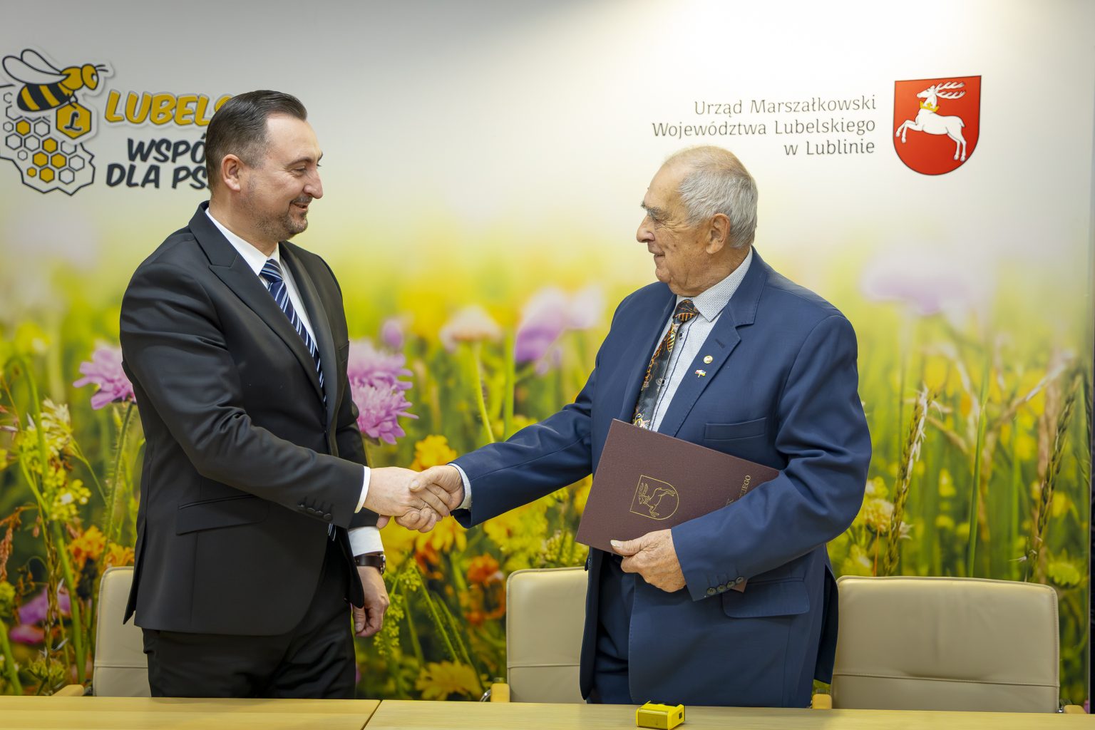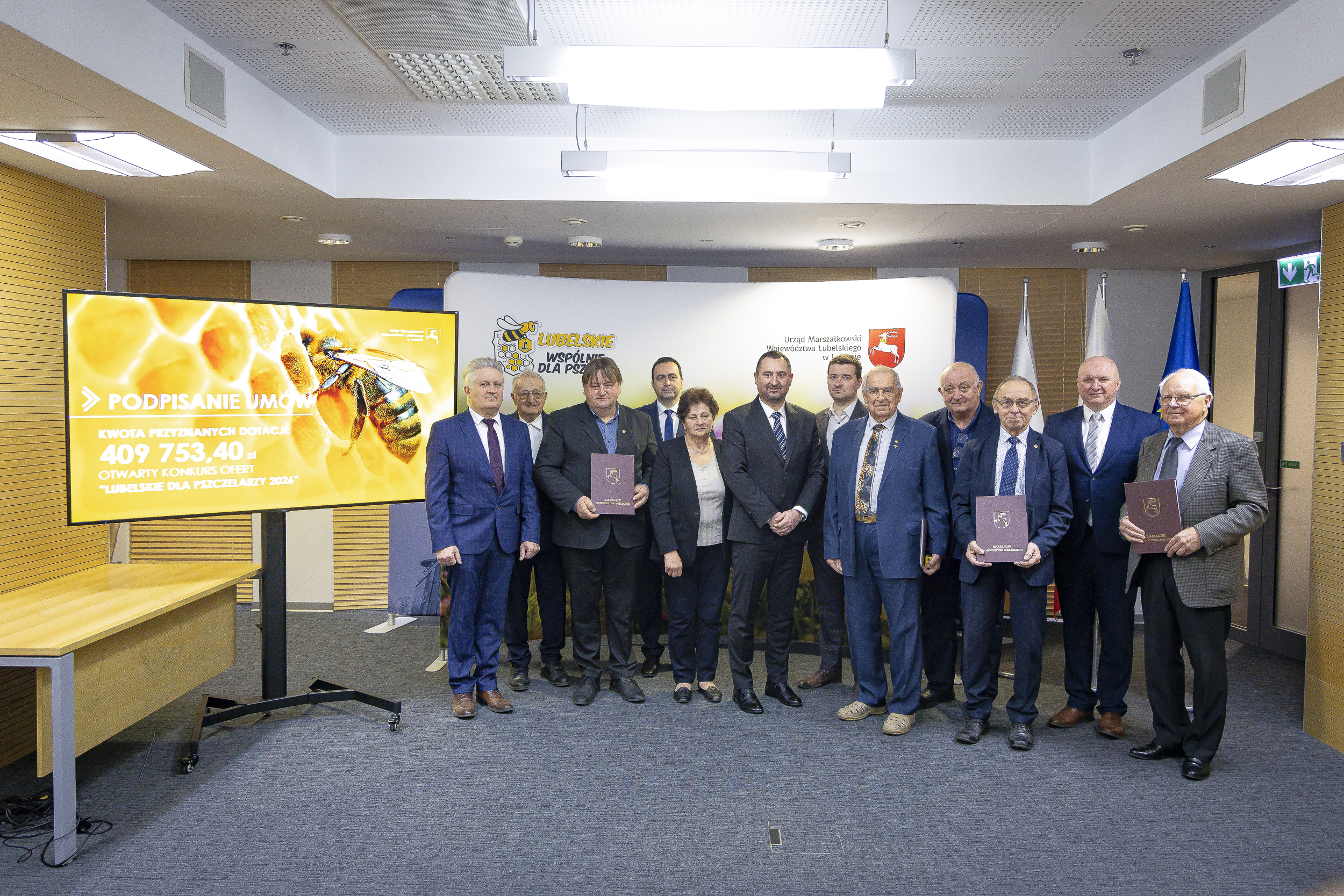 Wicemarszałek Województwa Lubelskiego Marek Wojciechowski podpisał umowy z pięcioma organizacjami pszczelarskimi, które zrealizują zadania mające na celu ochronę zdrowotności i wydajności lokalnych pasiek. Na zakup i przerób węzy pszczelej przeznaczono łącznie niemal 410 tys. złotych.