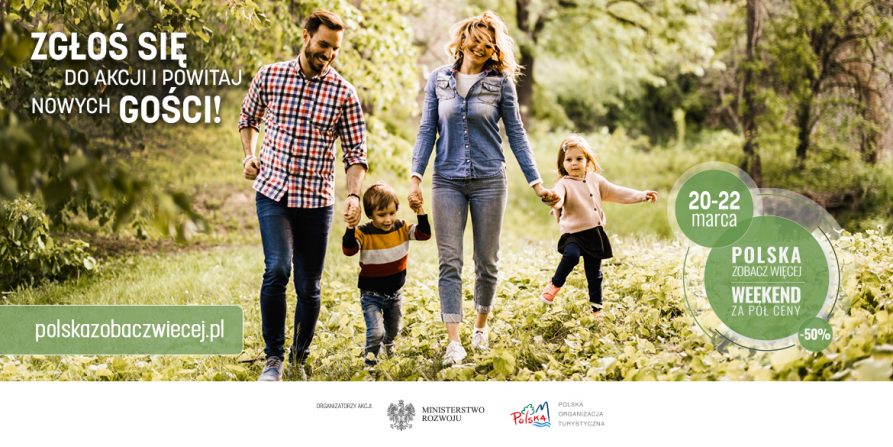 Ruszył nabór do 8. edycji akcji „POLSKA ZOBACZ WIĘCEJ – WEEKEND ZA PÓŁ CENY”. Zapraszamy przedsiębiorców z branży turystycznej, instytucje samorządowe, hotelarzy, restauratorów, organizacje i instytucje związane z obsługą ruchu turystycznego, a także organizatorów eventów sportowych – rejestracja trwa do 31 stycznia. Wiosenna edycja odbędzie się w weekend 20-22 marca. Udział w akcji to nie tylko szansa na pozyskanie nowych klientów z Polski i za granicy, ale także doskonała okazja do darmowej reklamy.
