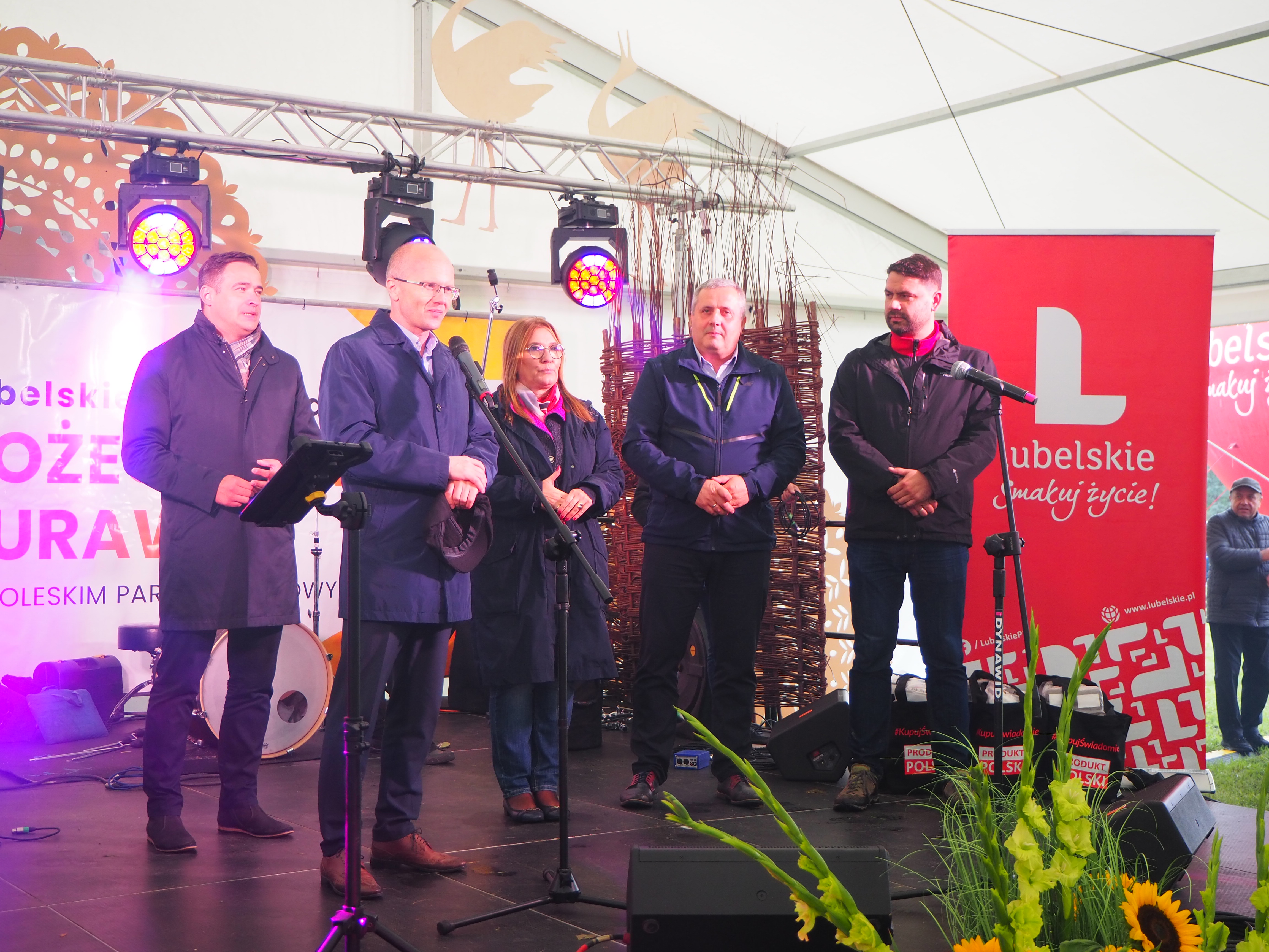 Deszczowa pogoda nie odstraszyła mieszkańców i turystów, którzy postanowili uczestniczyć w pożegnaniu lubelskich żurawi. Niektórzy przybyli z bardzo daleka. Jeden z turystów przyjechał aż z Kanady. Oczywiście, czekała na niego niespodzianka ufundowana przez Poleski Park Narodowy. Nie zabrakło też konkursów i zabaw dla dzieci. O podniebienia zadbały koła gospodyń wiejskich. Na scenie zaprezentowały się także zespoły muzyczne z województwa lubelskiego.
