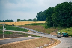 Branża drogowa (zaawansowanie 90%): obecnie wykonywane są roboty nawierzchniowe (warstwa ścieralna), roboty brukarskie, roboty wykończeniowe i porządkowe, oznakowanie pionowe. Pozostały do wykonania warstwa ścieralna, pobocza z kruszywa łamanego, oznakowanie pionowe i poziome.