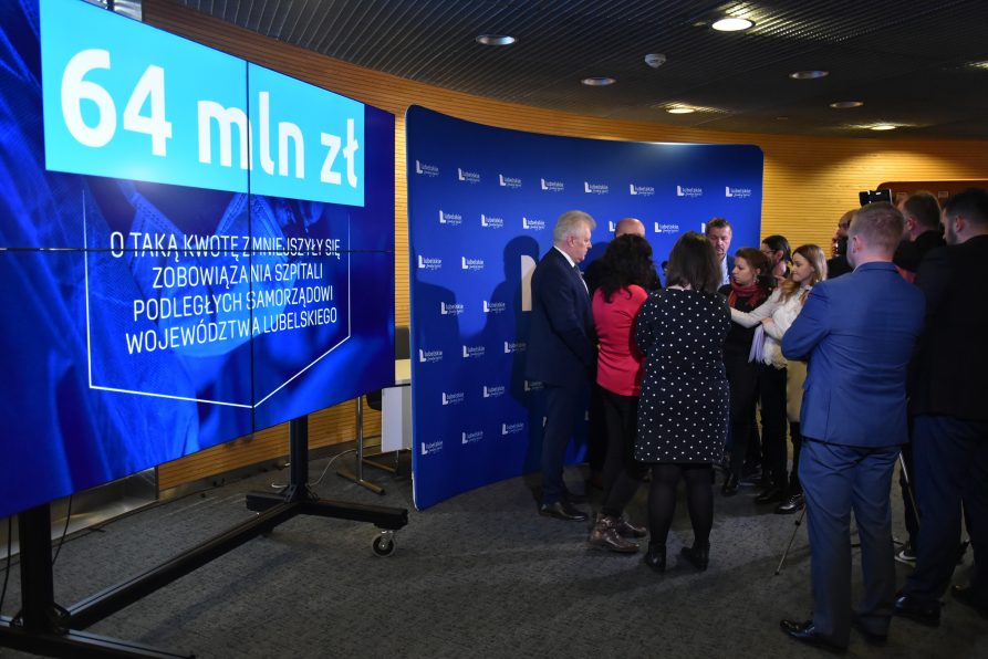 W Lubelskim Centrum Konferencyjnym w Lublinie odbyła się dziś konferencja prasowa dotyczącą zmniejszeniu się w grudniu zobowiązań szpitali podległych samorządowi województwa lubelskiego o kwotę 64 mln zł. Na koniec listopada wynosiły 959 mln zł, obecnie na koniec grudnia kwota ta wynosi 895 mln zł.