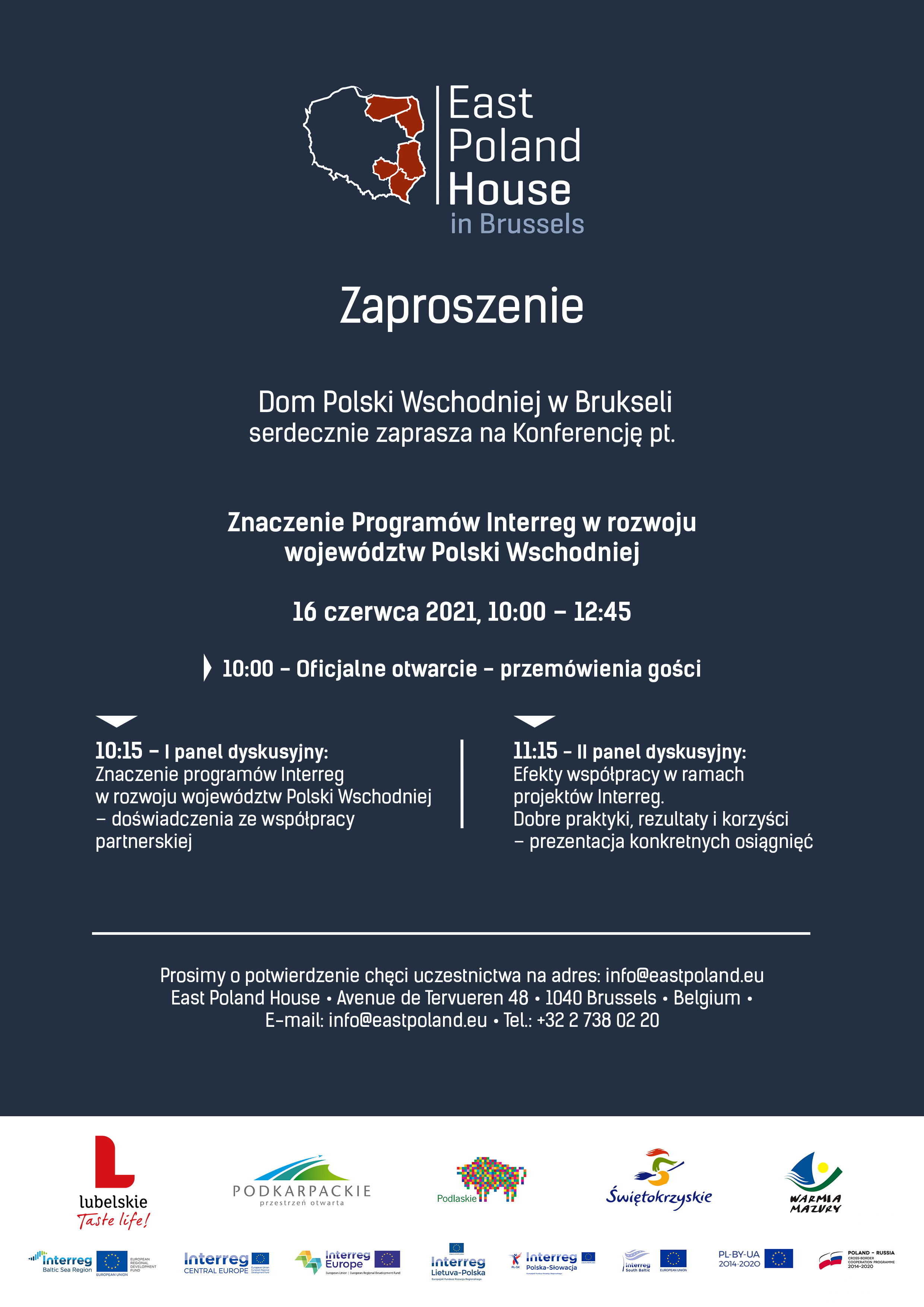 Zachęcamy do rejestracji i udziału w konferencji pn. „Znaczenie Programów Interreg w rozwoju województw Polski Wschodniej” w dniu 16 czerwca 2021r. o godz. 10:00.