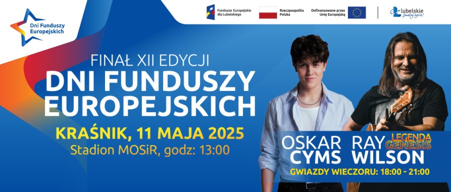 Ray Wilson z projektem Genesis Classic, gwiazda młodego pokolenia Oskar Cyms, występy artystów rodzimych instytucji kulturalnych i lokalnych talentów – to tylko niektóre z mocy atrakcji, jakie Urząd Marszałkowski Województwa Lubelskiego przygotował na XII już Finał Dni Funduszy Europejskich. Zapraszamy wszystkich mieszkańców regionu już 11 maja do Miasteczka Europejskiego w Kraśniku. Udział we wszystkich atrakcjach…