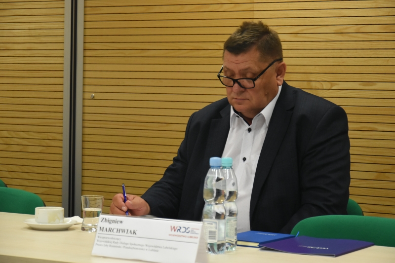 Marszałek Województwa Lubelskiego Jarosław Stawiarski otwierający posiedzenie Prezydium WRDS WL