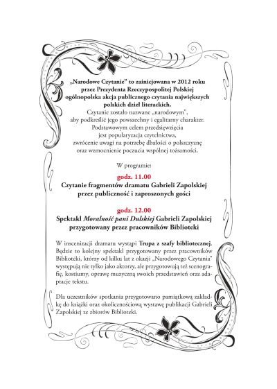 „Trupa z szafy bibliotecznej”, czyli amatorski zespół teatralny Wojewódzkiej Biblioteki Publicznej im. H. Łopacińskiego zaprezentuje swoją interpretację „Moralności pani Dulskiej”. Wzorem lat ubiegłych z okazji Narodowego Czytania pracownicy biblioteki nie tylko odegrają role na scenie, ale wcielą się również w reżyserów, scenografów i przygotują oprawę muzyczną spektaklu. Przedstawienie odbędzie się w najbliższą sobotę, 4 września…