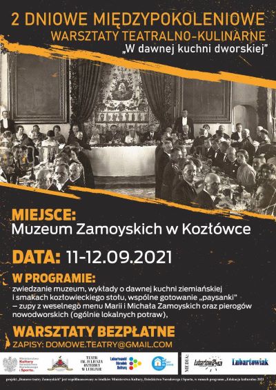 Muzeum Zamoyskich w Kozłówce zaprasza na dwudniowe warsztaty teatralno-kulinarne „W dawnej kuchni dworskiej”, które odbędą się w dniach 11-12 września 2021 . Podczas wydarzenia będzie można zwiedzić pałac, poznać tajniki dawnej kuchni oraz posmakować regionalnych rarytasów. Zapisy na warsztaty pod adresem domowe.teatry@gmail.com