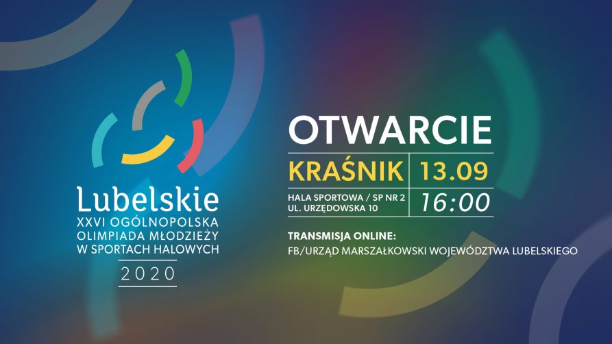 Uprzejmie informujemy, że Otwarcie XXVI Ogólnopolskiej Olimpiady Młodzieży w Sportach Halowych, które odbędzie się 13 września w Kraśniku, będzie transmitowane online na Facebooku – profil Urzędu Marszałkowskiego Województwa Lubelskiego (https://www.facebook.com/urzadmarszalkowski.lubelskie).