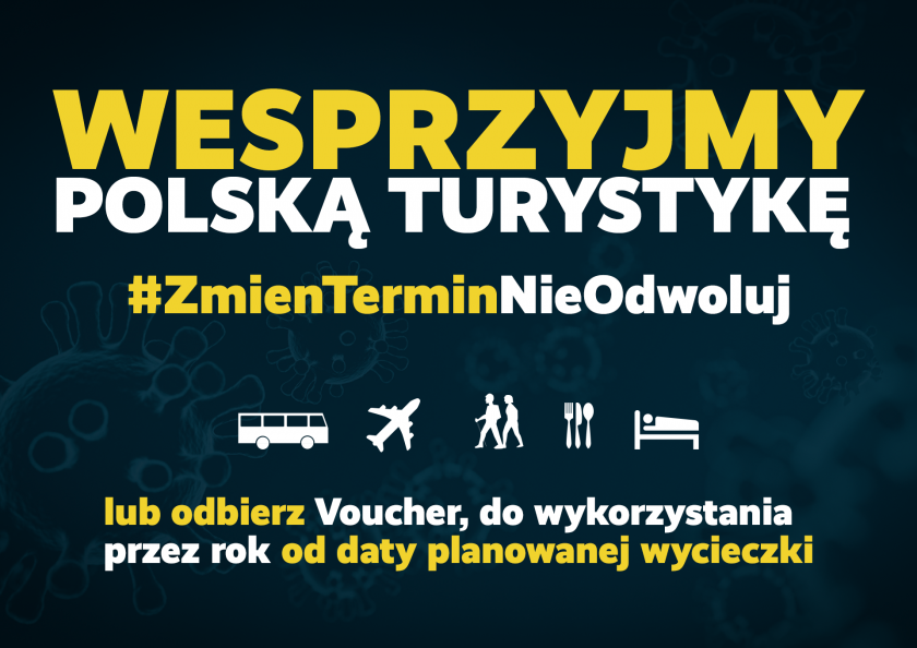 Wesprzyjmy polską turystykę, poprzez #zmienterminnieodwoluj oraz „tarczę antykryzysową” przyjętą przez Sejm. Zaproponowane rozwiązania otwierają nowe możliwości dla Klienta oraz organizatora turystyki, które pomogą przetrwać ten trudny czas polskiej turystyce. #zmienterminnieodwoluj to akcja branży turystycznej skierowana do każdego klienta, tak aby mógł on skorzystać z wyjazdu w późniejszym terminie, nie rezygnując z wycieczki i wspierając tym…