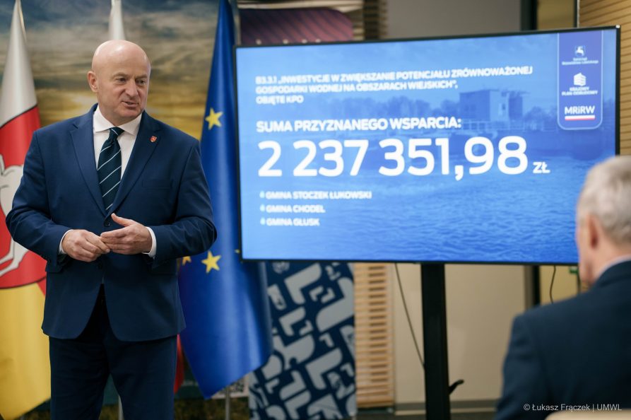 Marszałek Jarosław Stawiarski i członek zarządu Marcin Szewczak wręczyli 14 umów o dofinansowanie projektów w ramach programu Fundusze Europejskie dla Lubelskiego 2021-2027, których całkowita wartość wynosi niemal 44 mln zł, przy wsparciu UE w wysokości ponad 31 mln zł. Przedmiotem wręczanych umów było dostosowanie do zmian klimatu i zapobieganie powodziom i suszy oraz Zintegrowane Inwestycje Terytorialne…